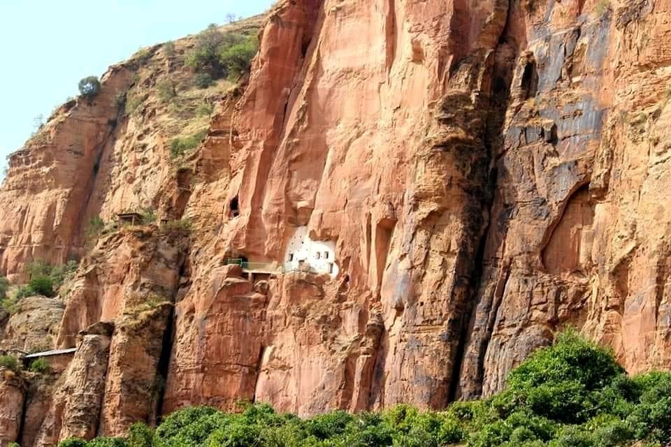 Abba Yohanni is a monastery about 8 km off the main road. Another local road goes to within a few meters of the foot of Debre Assa, the mountain on which the church is built. Because of its whitewashed facade, the church is visible from a distance. Incised from the sheer cliff, the church is accessible only through a tunnel-like passage on its west side.