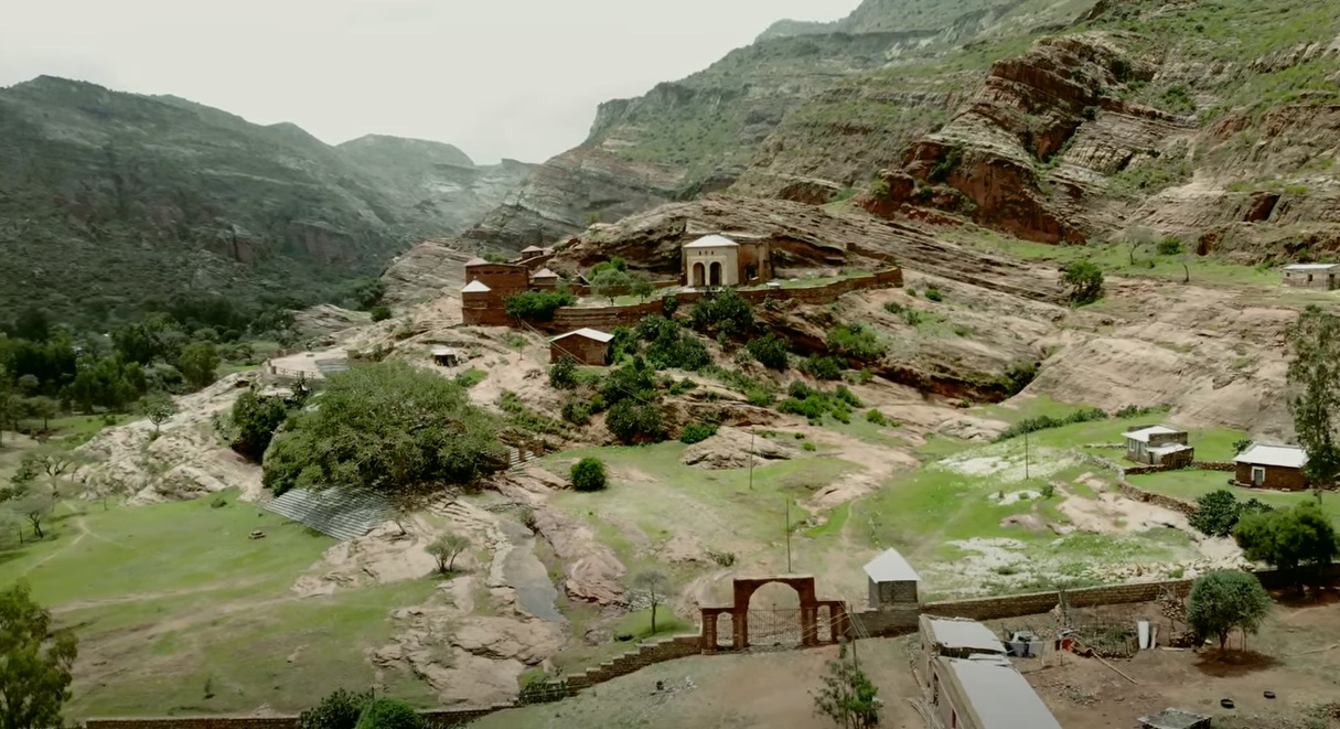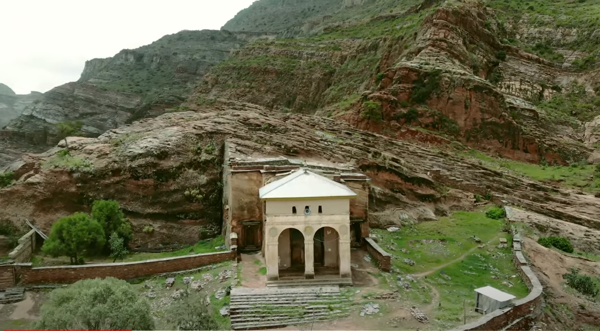 If you drive 15 kilometers to the west from Wukro, you will come to the Abraha We Atsbeha church, a rock church in one of the most scenic places in the region. It is one of the oldest churches and is known for its extraordinary interior decoration and its magnificent wall frescoes. Its ceiling is decorated with intricate patterns and its walls are littered with crosses carved into the stone. More than a dozen enormous pillars divide the interior of the church into several naves. Abraha we Atsbeha is undoubtedly a masterpiece inside the rock-hewn churches. According to local tradition, the church was built in the 4th century, but some scholars date the construction to the 10th century. In any case, it was built long before the famous rock-hewn churches of Lalibela, with which the highly developed rock architecture reached its peak.