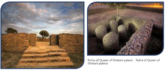Located about 700m east of Th'akha Maryam and less than 2km southwest of the Cathedral, this palace Is the best preserved and therefore the most spectacular of the elite residences. Traditions strongly attribute the palace to the famous legendary Queen of Sheba, who ruled Aksum some 3000 years ago. The overall plan is similar to that of Ta'akha Maryam, in which the central pavilion measures 18 meter square and has similar layout, with massive, well-dressed granite slabs used as cornerstones. The surrounding courtyards are smaller and closer, and the whole complex measure only 55 x 52m over all. (Phillipson 1998)