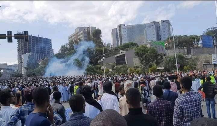 Today’s Eid al-Fitr prayers in Addis Ababa were disrupted after gunshots and teargas were discharged in the midst of crowded places. Blasts were heard when prayers commenced prompting the attendees to run in different directions.
