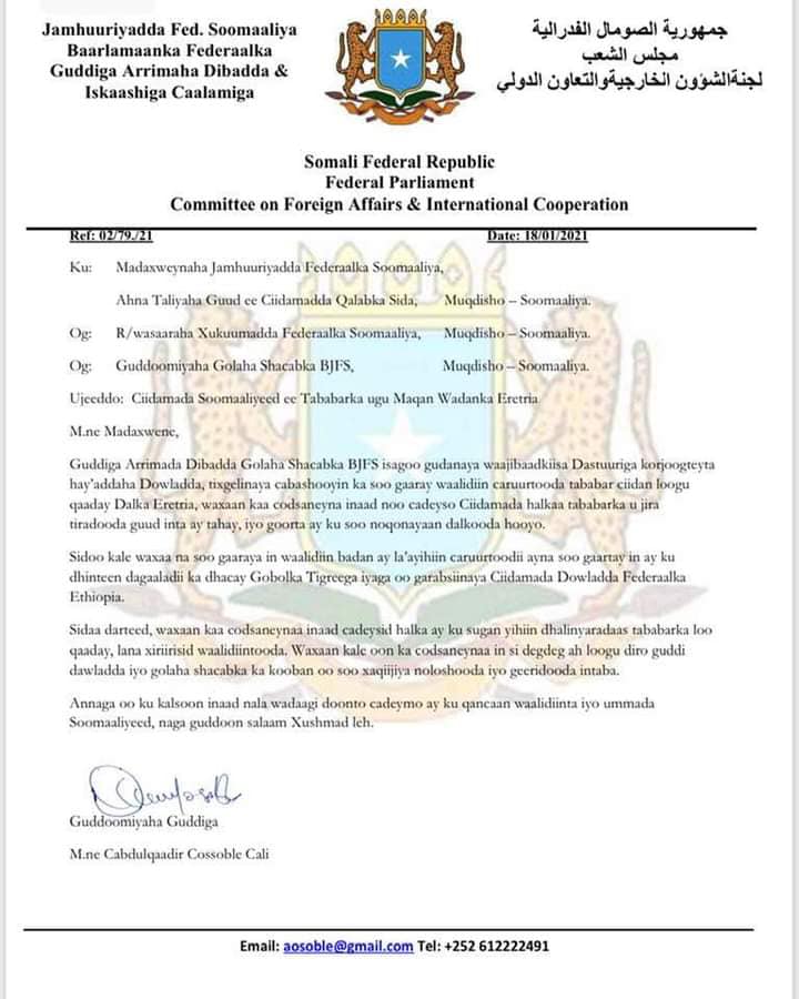 Somali Parliament asks President Farmaajo to clarify the whereabouts of thousands of Somali soldiers trained in Eritrea. They urge him to send team to Asmara to confirm if they're alive or dead.