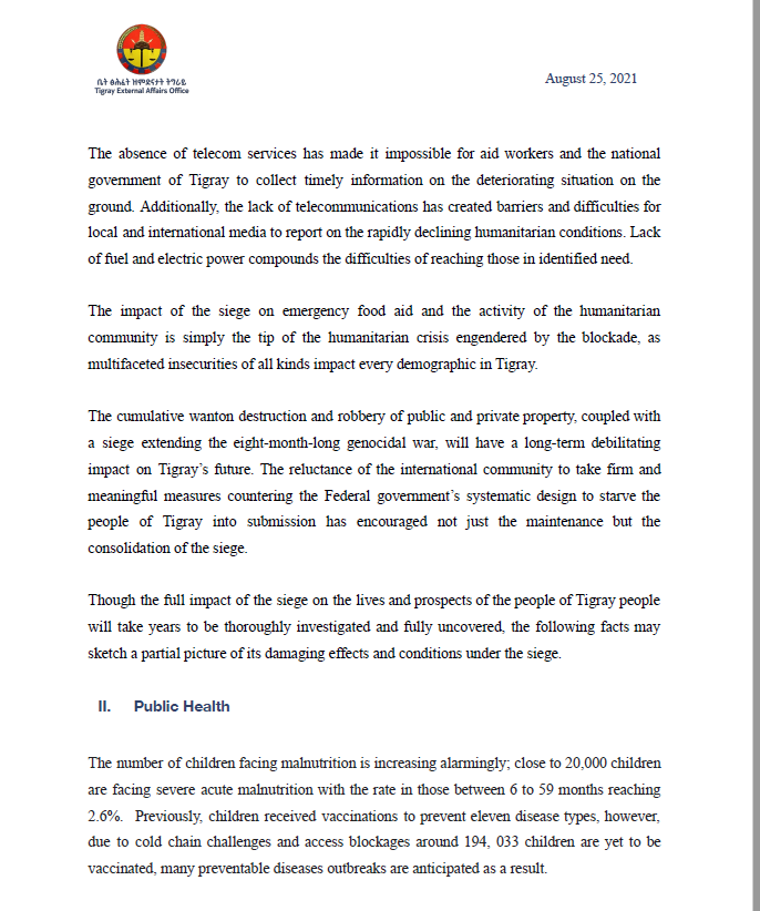 Though the full impact of the siege on the lives and prospects of the people of Tigray people will take years to be thoroughly investigated and fully uncovered, the following facts may sketch a partial picture of its damaging effects and conditions under the siege.