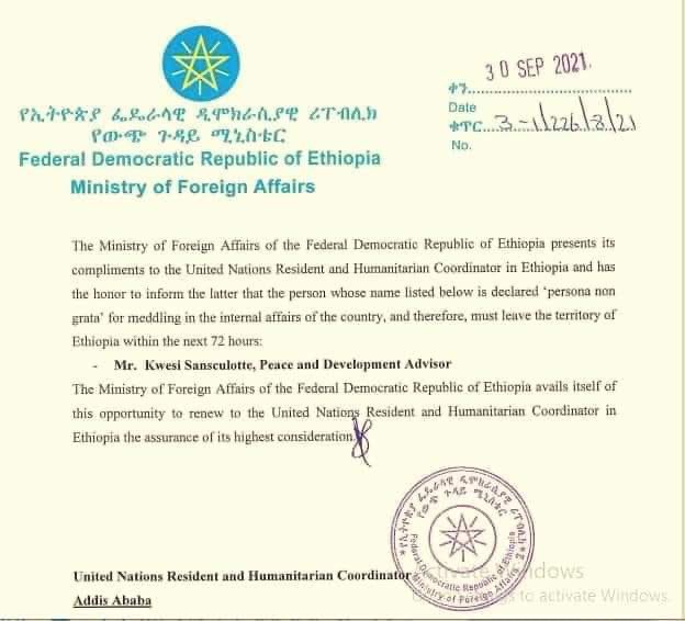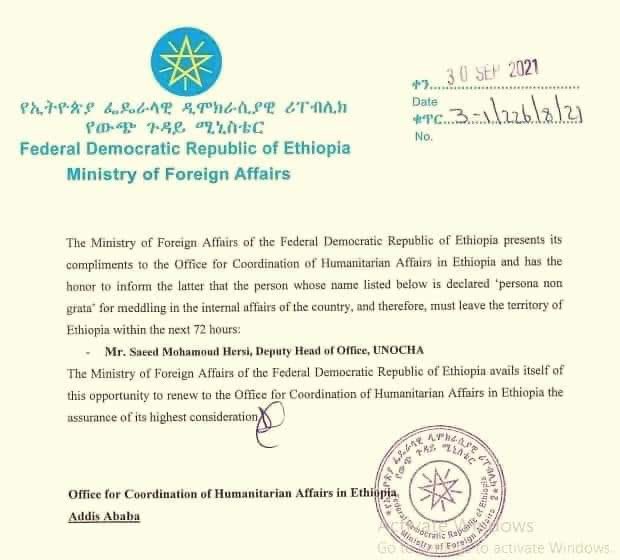 According to the letters addressed to each of the 7 individuals listed below, all of them must leave the territory of Ethiopia within the next 72 hours.