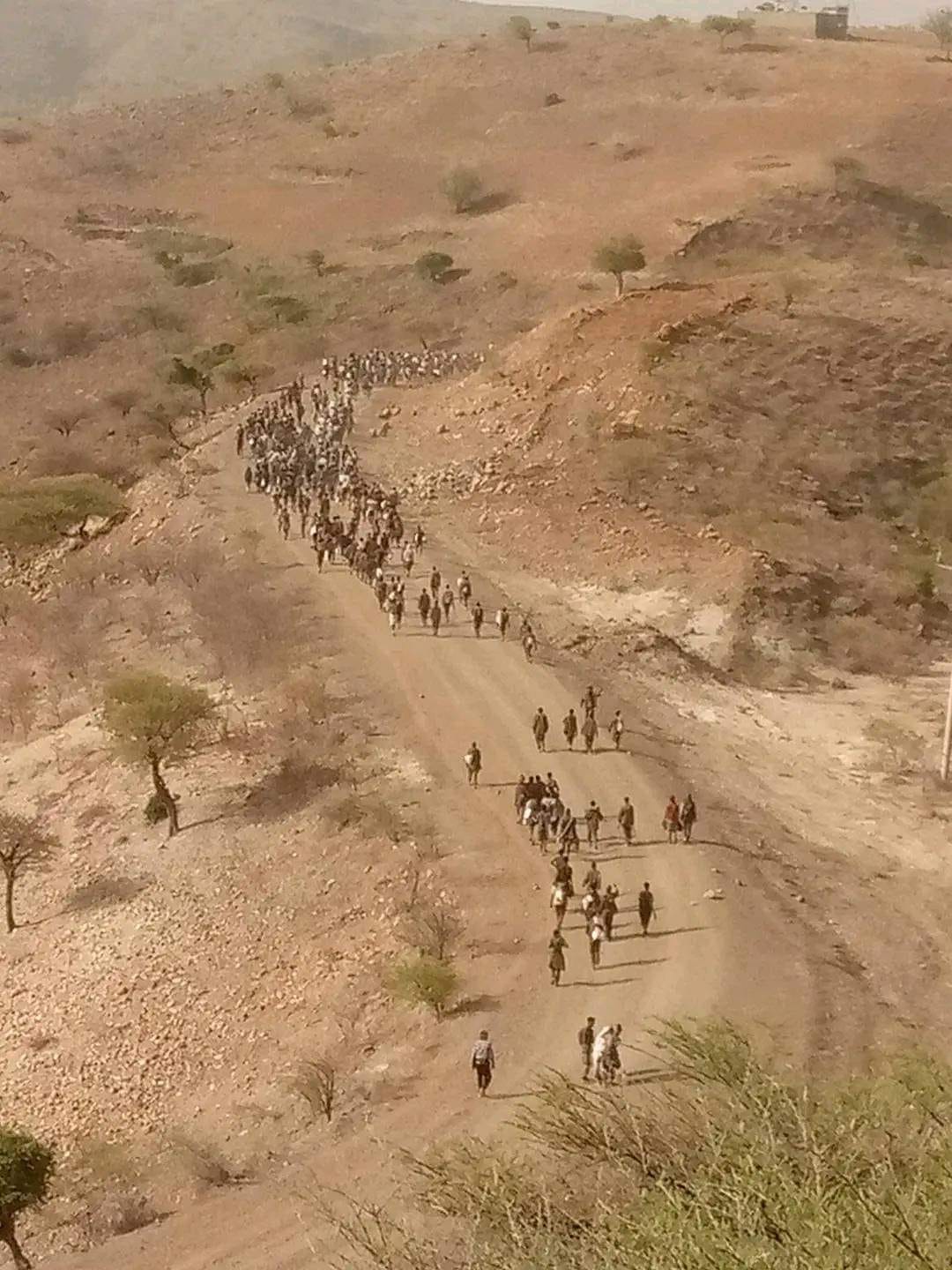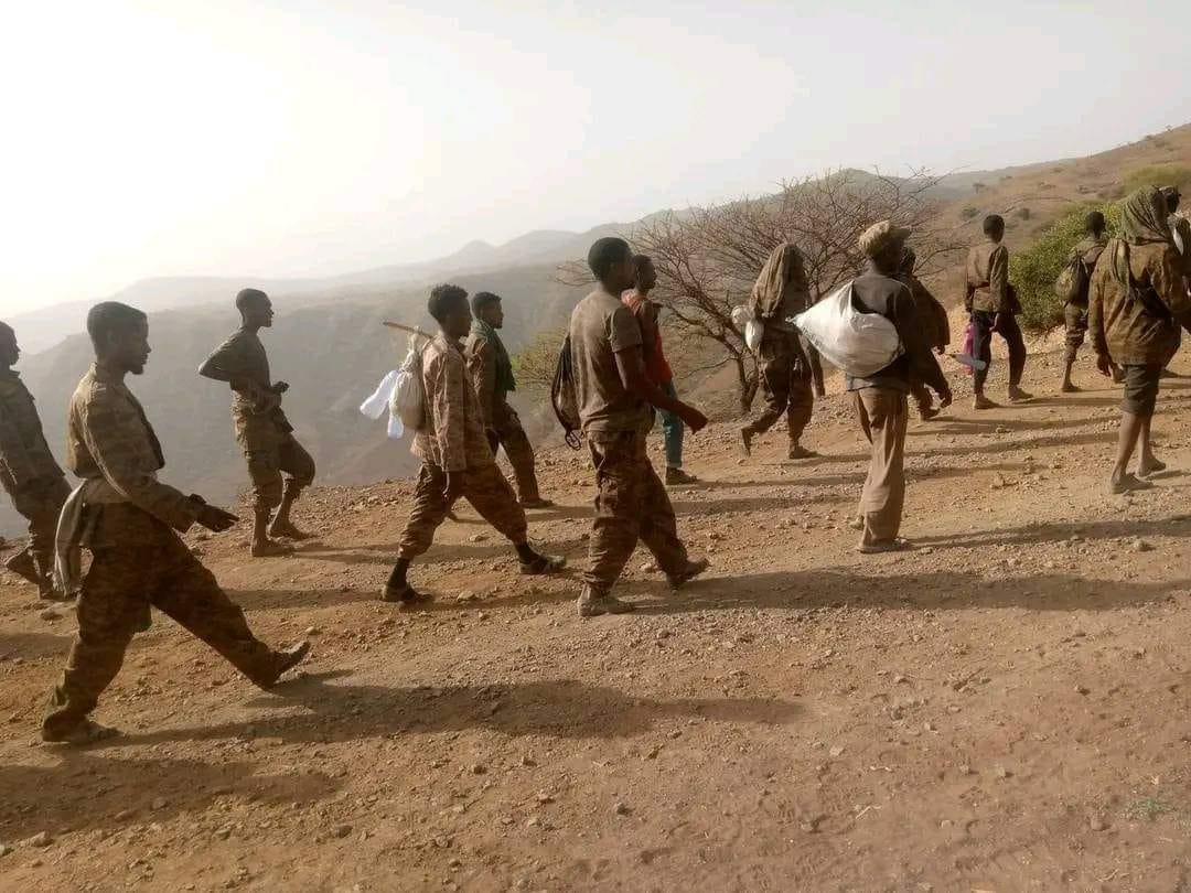 InPictre: Ethiopian POWs on foot from Tigray to Ethiopia after Tigray forces dropped them at the border with Amhara region.