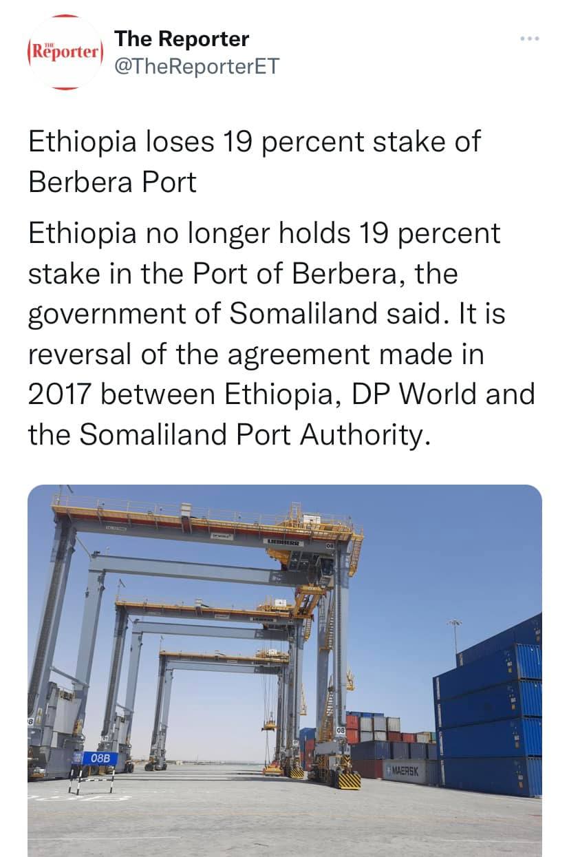 ኢትዮጵያ በበርበራ ወደብ የነበራትን 19% ድርሻ ማጣቷን የሶማሊላንድ መንግስት አስታወቀ