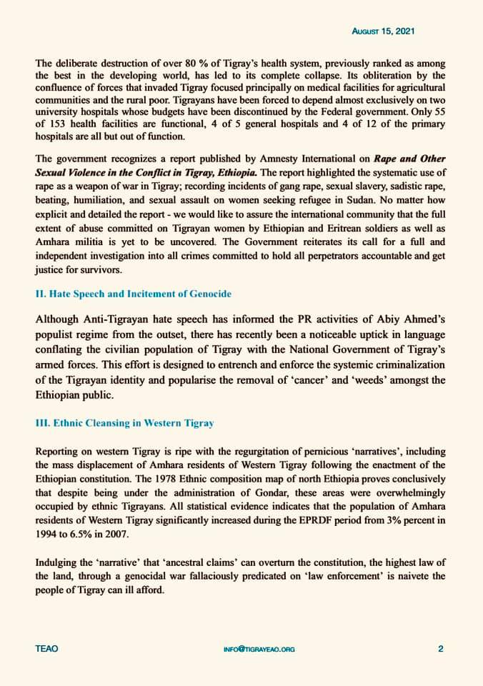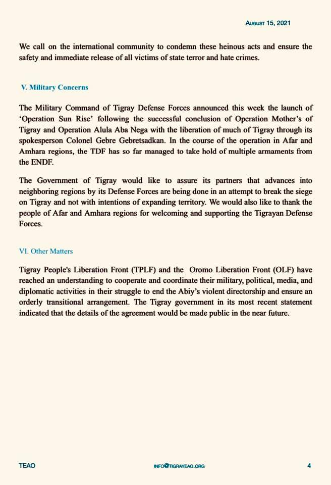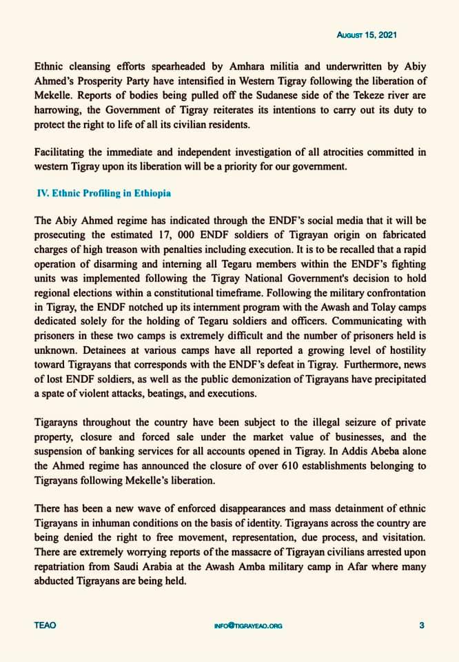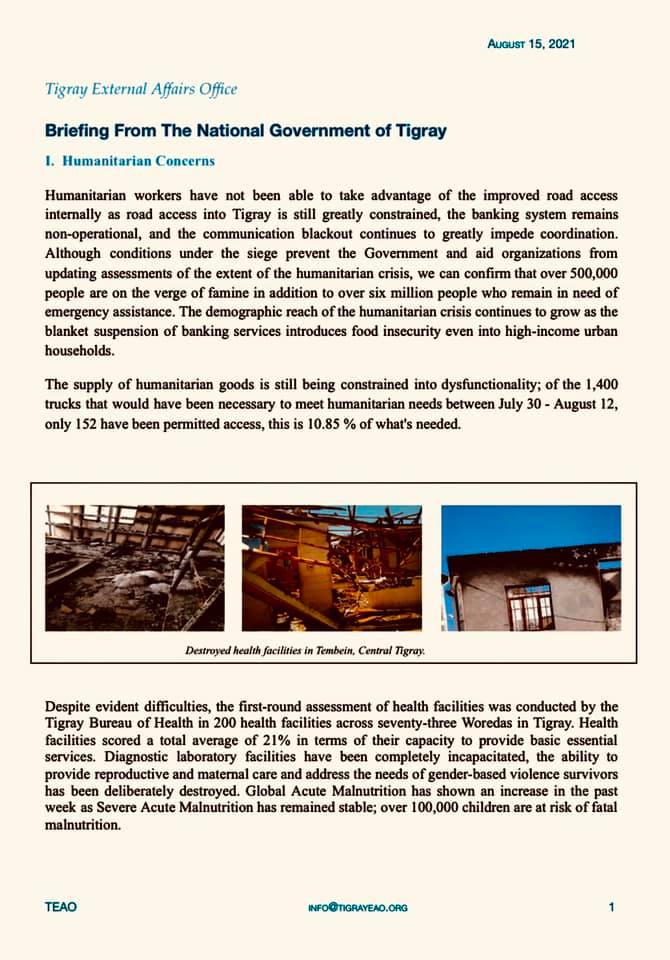 Briefing from Tigray External Affairs Office - August 15, 2021