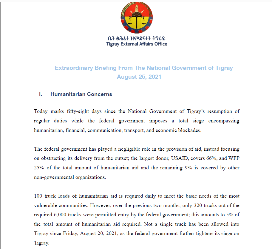 Extraordinary Briefing From The National Government of Tigray August 25, 2021