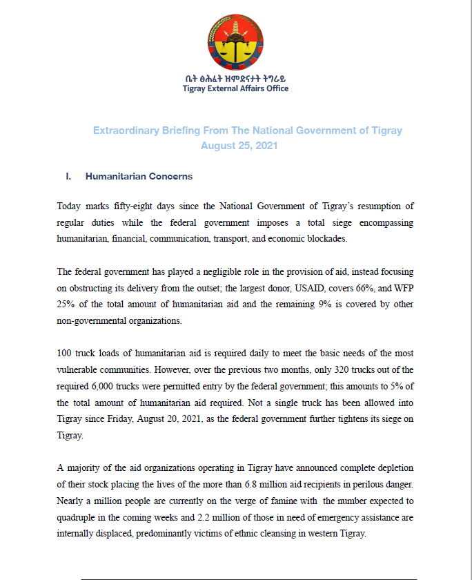 Today marks fifty-eight days since the National Government of Tigray’s resumption of regular duties while the federal government imposes a total siege encompassing humanitarian, financial, communication, transport, and economic blockades.