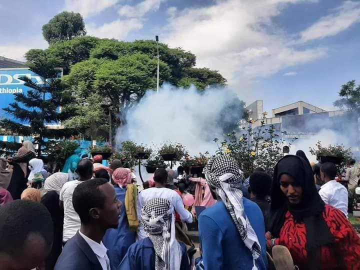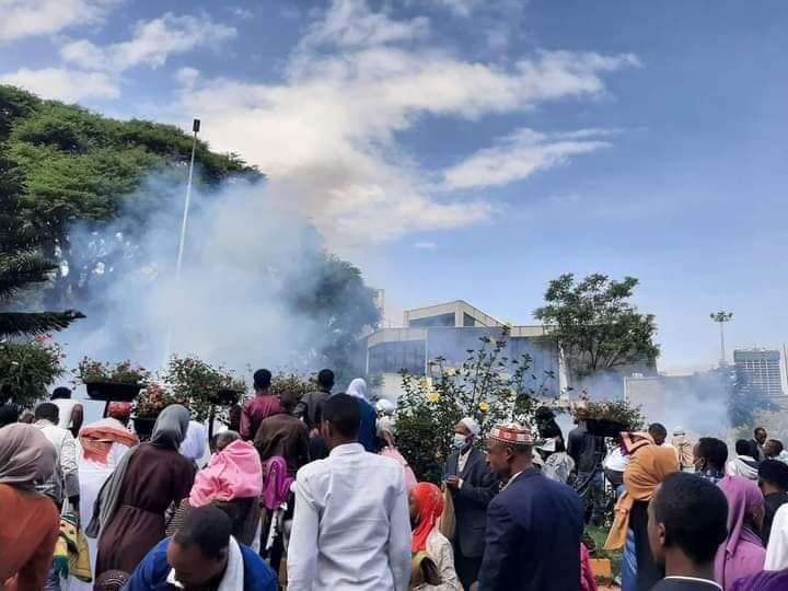 Today’s Eid al-Fitr prayers in Addis Ababa were disrupted after gunshots and teargas were discharged in the midst of crowded places. Blasts were heard when prayers commenced prompting the attendees to run in different directions.